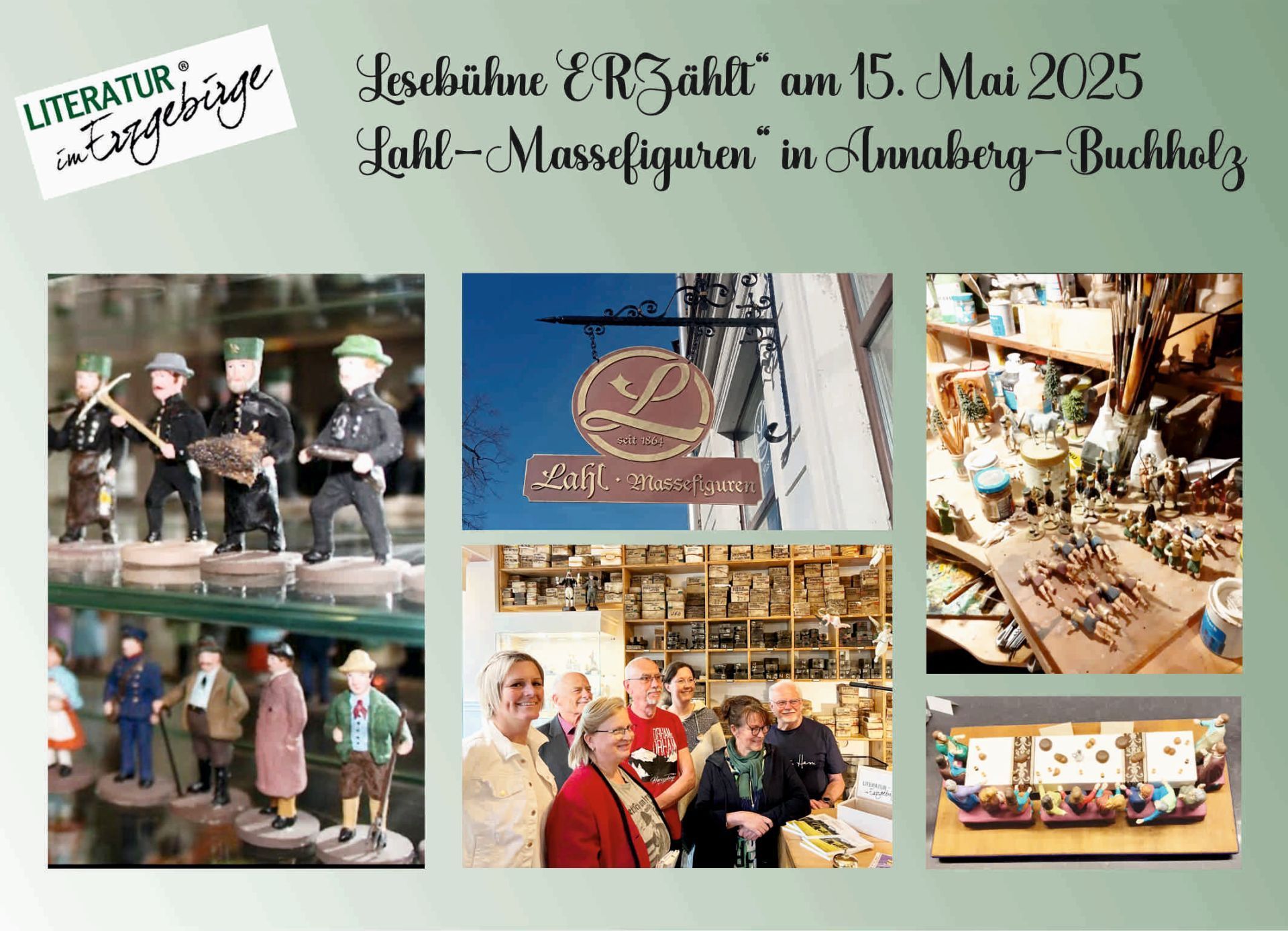 - Nächste „Lesebühne ERZählt“: Donnerstag, 15. Mai 2025, 19.00 Uhr, Lahl Massefiguren, Annaberg-Buchholz, Galerie Unfertig, Kleine Kartengasse 21, 09456 Annaberg-Buchholz.