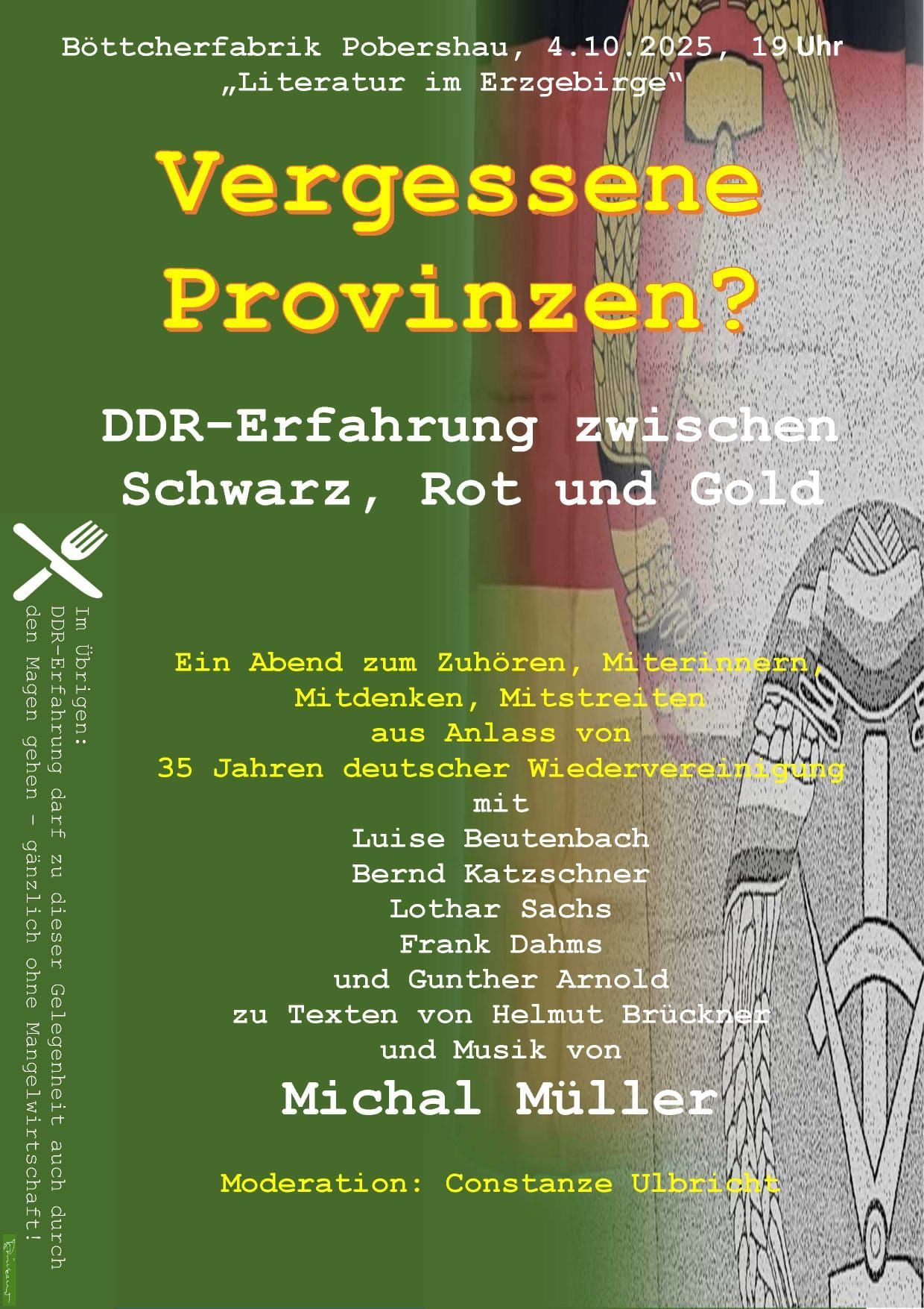 - Freitag, 25. April 2025, 18 Uhr: Kultur- und Begegnungszentrum (KuBz) Großrückerswalde, 09518 Großrückerswalde
